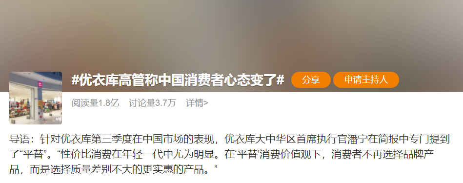 随着中国消费者审美转变与文化自信的增强,优衣库曾经的“日式美学”对其的吸引力正在削弱。