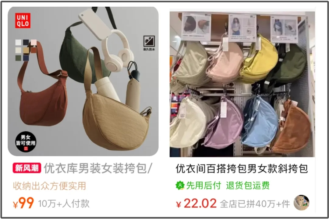 优衣库原价99元的“饺子包”,在其他电商平台仅需20多元就可获得同款。