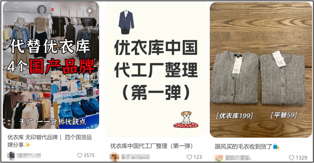 中国消费者们积极地挖掘分享着优衣库的“平价替代品”,包括国产品牌、代工厂、和具体的商品。