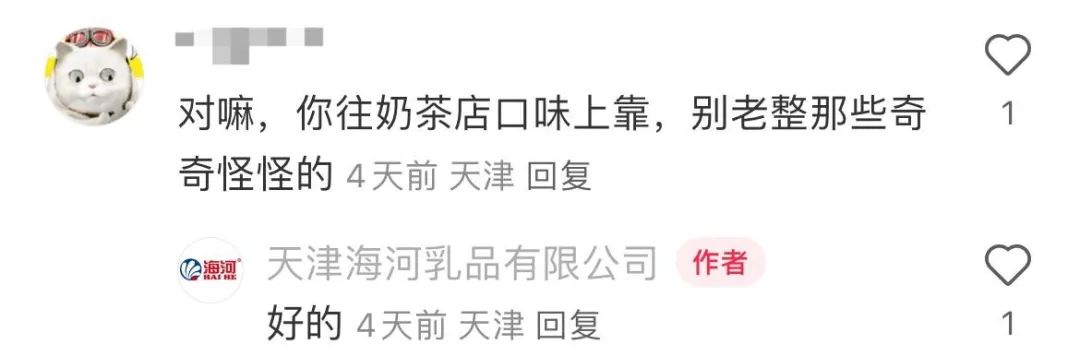 按理说,海河直接“照搬”新茶饮的口味公式应该会让受众有些反感,可事实却是它们成为了受众喜闻乐见的海河口味。