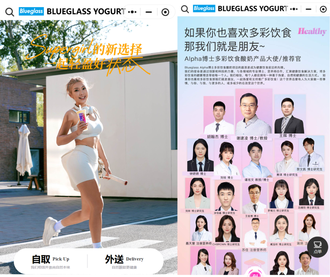通过专家背书、健康科学配方的加持,Blueglass成功塑造了高端、专业、健康的功能性饮品形象,吸引重视健康饮食的中产群体(尤其是女性)为其买单。
