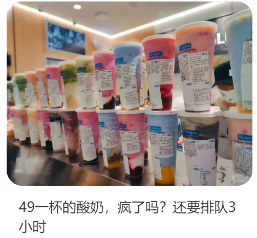 更重要的是,这还是一杯均价40元+,新店开业时能排队3小时的网红酸奶。