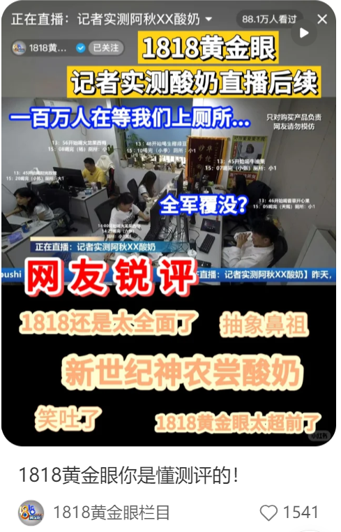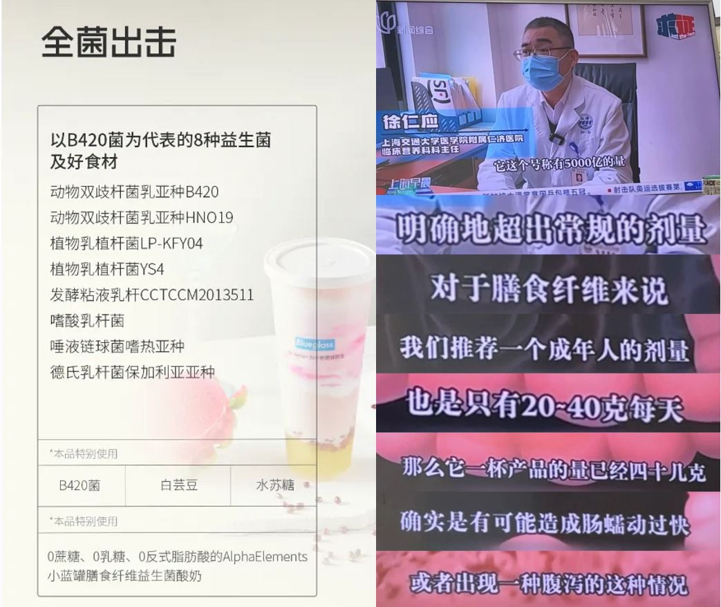 甚至有消费者喝完Blueglass腹泻进了医院,知名民生节目1818黄金眼还为此开了一场测评直播,让Blueglass再次出圈。