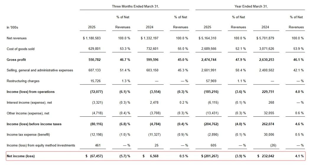 其中,耐克来到了一个阵痛期。2025财年Q3(截至今年2月28日)总营收113亿美元,同比下滑9%。但好消息是,营收和净利润跌幅均低于市场预期,且库存总额同比减少2%至75亿美元,实现“三连降”,库存压力持续改善。花旗也在财报公布后第一时间给出“持有”评级,表明市场正逐步重拾对耐克的信心。