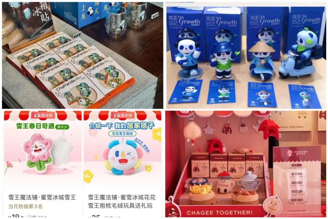 茶百道的 IP 升级是品牌从 “视觉符号” 到 “情感载体” 的进化逻辑。其摒弃被调侃为 “翻盖垃圾桶” 的旧 LOGO,回归蓝色大熊猫 “丁丁猫” 形象,并通过毛绒耳机包、熊猫手办盲盒等周边生态,将 IP 从平面符号转化为可触摸、可感知的情感介质。对比雪王构建 “魔法铺” 电商渠道、霸王茶姬以地域限定毛绒玩 “稀缺性传播”,茶百道的突破在于将 IP 融入用户生活场景 —— 无论是办公桌上的耳机包,还是饮品杯盖上的萌宠玩偶,都在潜移默化中强化 “品牌陪伴感”。不过,IP 形象的情感叙事深度不足,仍以物理化周边触达为主,缺乏如动画短片、价值观内容等长线人格塑造,难以构建从 “陪伴感” 到 “精神共鸣” 的递进式用户关系。