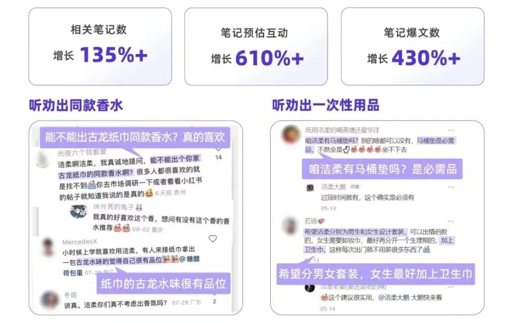 种草平台成为母婴品牌洞察用户需求的 “灵感库”。从洁柔听劝推出纸巾同款香水,到彩棠根据用户建议改良修容盘设计,品牌通过收集评论区反馈、发起 UGC 话题等方式,将用户纳入产品研发流程。这种 “用户共创” 模式,不仅提升产品与市场的契合度,更能激发用户的参与感与归属感。