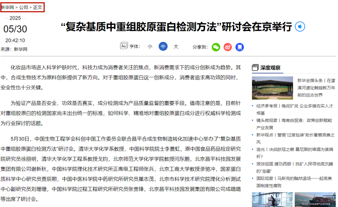 重组胶原蛋白,目前没有明确规定的检测标准。惊不惊喜意不意外。