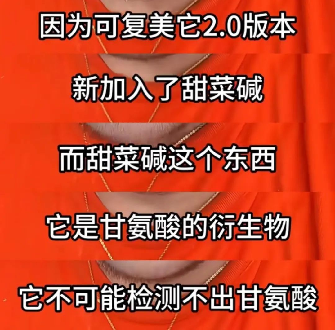 除了大嘴博士,其他成分党KOL也有提出:2.0里面,另外单独添加了甜菜碱,而甜菜碱是甘氨酸的衍生物。
