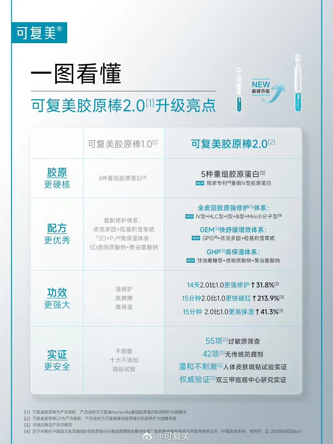 今年4月17号,可复美隆重发布胶原棒2.0版本。反正就是各种升级,各种更加牛逼。