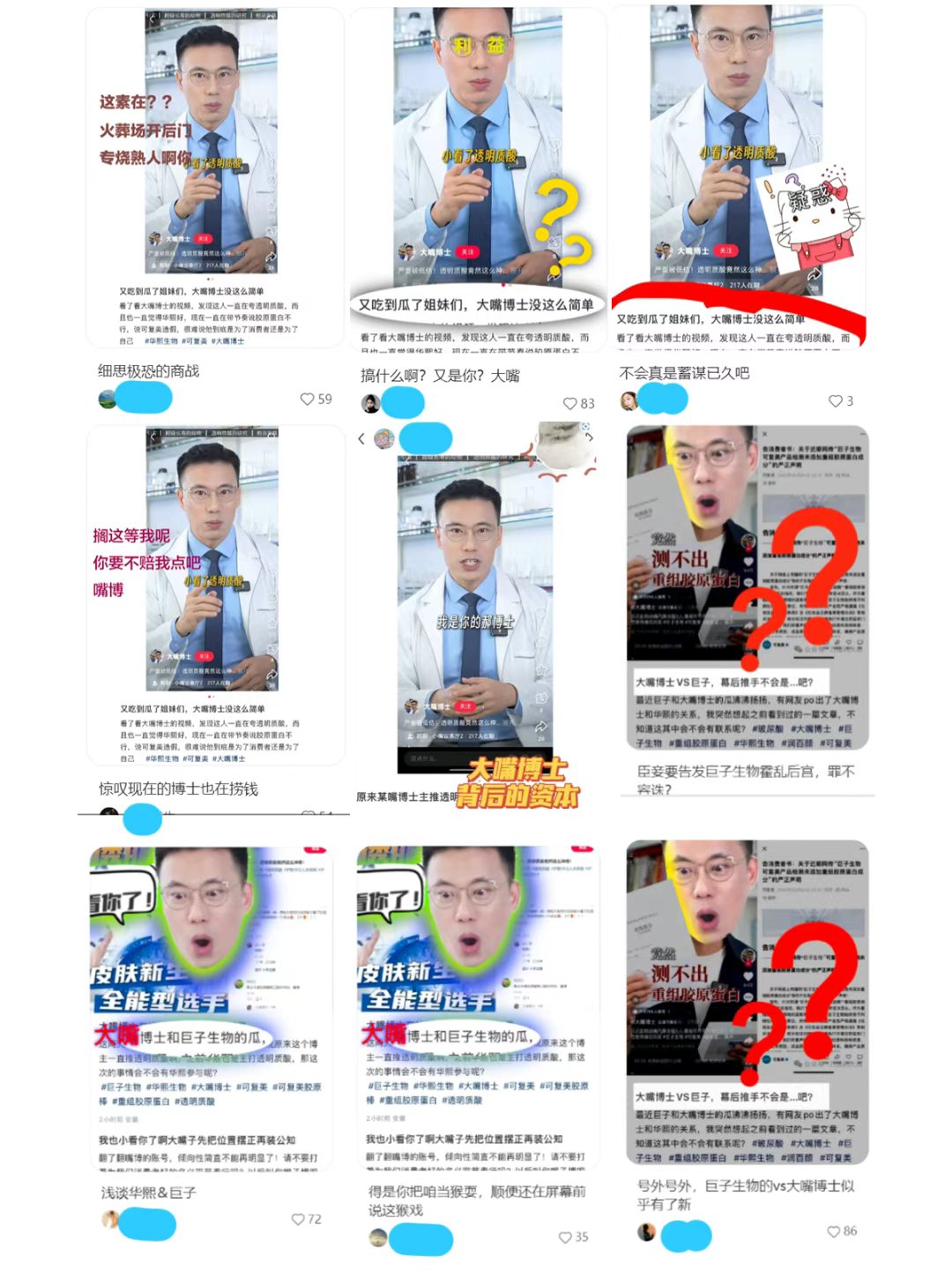 大嘴博士的表现方式不走激情路线,说的内容也偏行业,虽然在说重组胶原蛋白撒也不是,但在当时并没有引起很大的关注和舆情量。