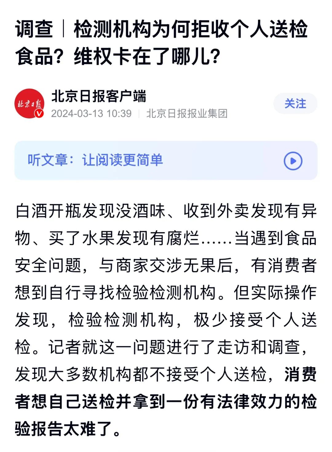 告诉大家一个冷知识,个人不能送检食品药品,有媒体做过报道。