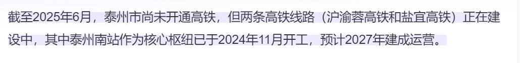 圈主查了一下,截止目前,泰州尚未开通高铁。