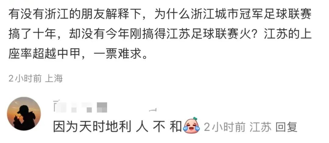 江苏最近在办城市足球联赛,热闹得让圈主在隔壁浙江看呆了。