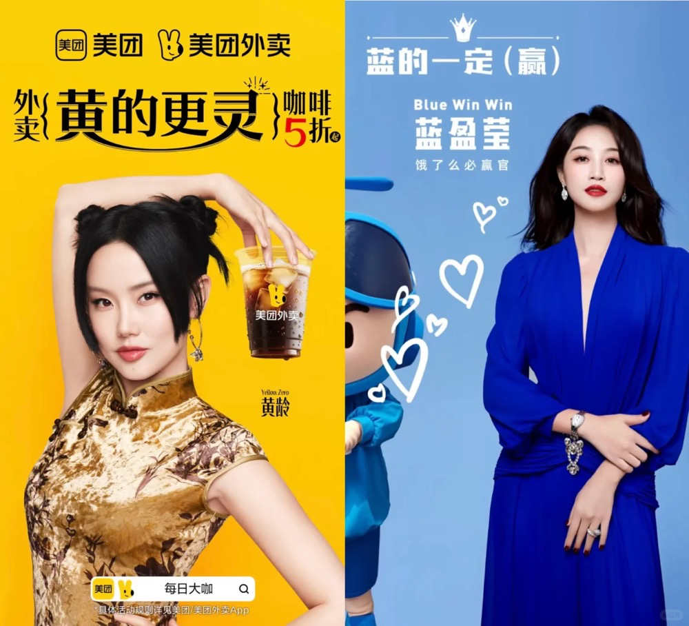 比如美团外卖邀请黄龄广告代言,放话“外卖,黄的更灵。”
