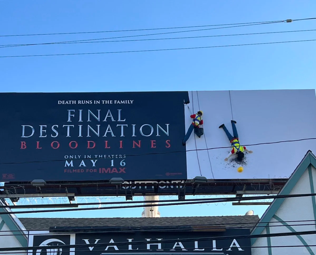 电影母公司华纳兄弟还打造了一块“坠落”的广告牌。