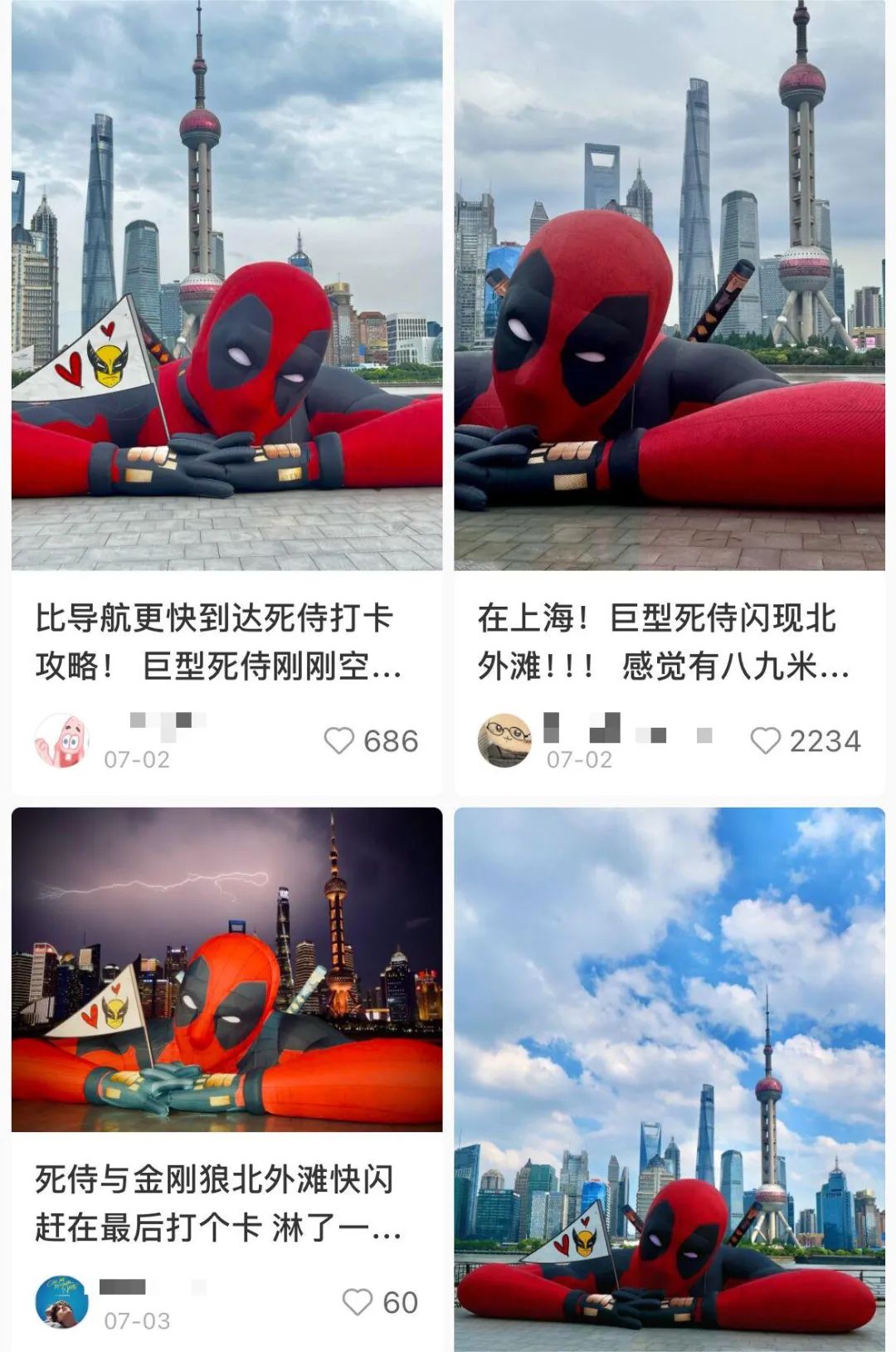 在国内,去年《死侍与金刚狼》电影上映前,角色死侍的大型装置出现在上海北外滩,跑去那里打卡。