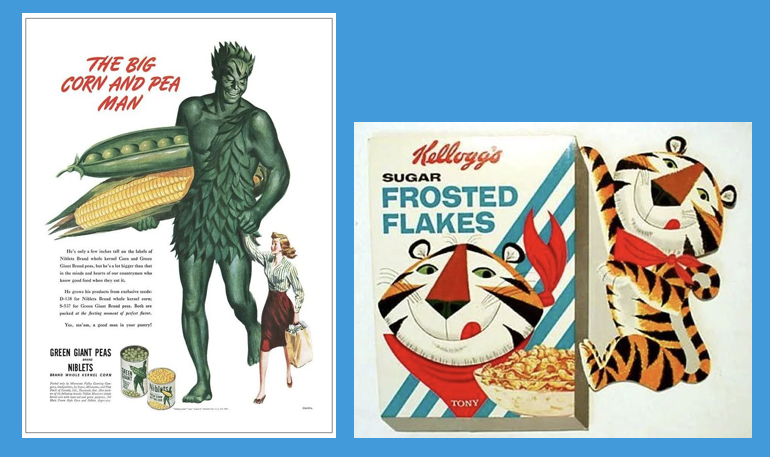 比如绿巨人豌豆,面团小子,金枪鱼查理,老虎托尼,小矮人糖豆,以及万宝路那个牛仔形象,都是其“戏剧性广告”理念的落地。