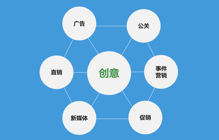 延续到今天,广告圈依然在用整合营销的思维,将广告、公关、促销、直销、事件营销、新媒体联动在一个大创意之下,进行整合营销传播。