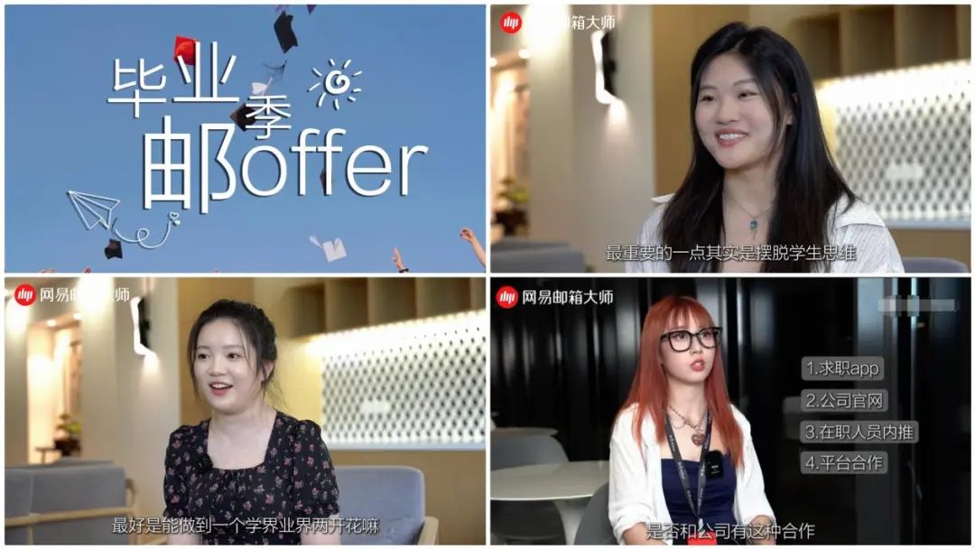 网易邮箱“拿 offer 加 BUFF”社交传播网易邮箱精准捕捉毕业生 “求职焦虑”,通过采访已上岸学生分享真实 offer 经验,将平台功能(邮箱沟通)与用户需求(求职技巧)深度绑定。内容层面,“过来人经验” 的真实性降低用户防御心理,如 “简历命名技巧”“面试反问话术” 等干货被大量收藏转发;传播层面,借微博、小红书等社交平台发起 #毕业 offer 好运 #话题,引导用户分享求职故事,形成 UGC 内容池。然而,互动形式偏单向输出,用户参与深度不足 —— 多数用户仅停留在 “看经验” 而非 “共创内容”,话题讨论中原创求职故事占比不足 20%。