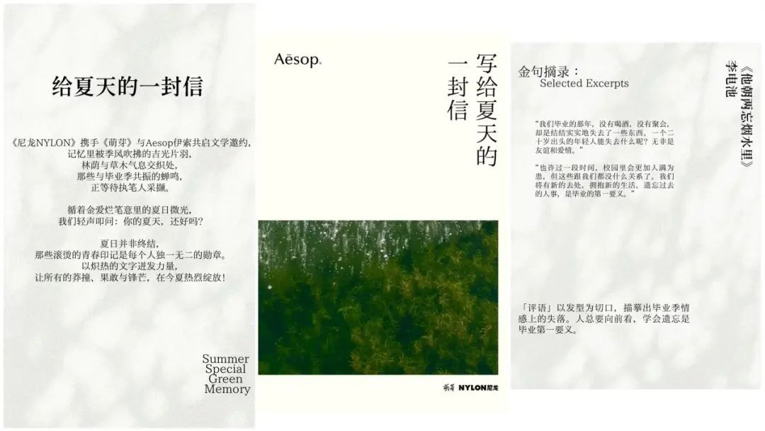 护肤品牌伊索捕捉到毕业生对 “精神指引” 的需求,以 “读者来信” 为载体,将毕业季的 “离别焦虑” 转化为 “文字疗愈”。线下门店的刊物赠阅活动,把商业空间转化为 “文学驿站”,既强化了品牌的人文属性,又通过 “非功利性互动” 降低用户心理防御,实现 情感共鸣到消费意愿的深层转化。。缺点是该策略对品牌文化底蕴要求较高,中小品牌难以复制;且营销效果偏长期价值沉淀,短期内对销量的拉动不显著。此外,文学载体的受众覆盖较窄,可能错失对文化内容敏感度较低的消费群体。