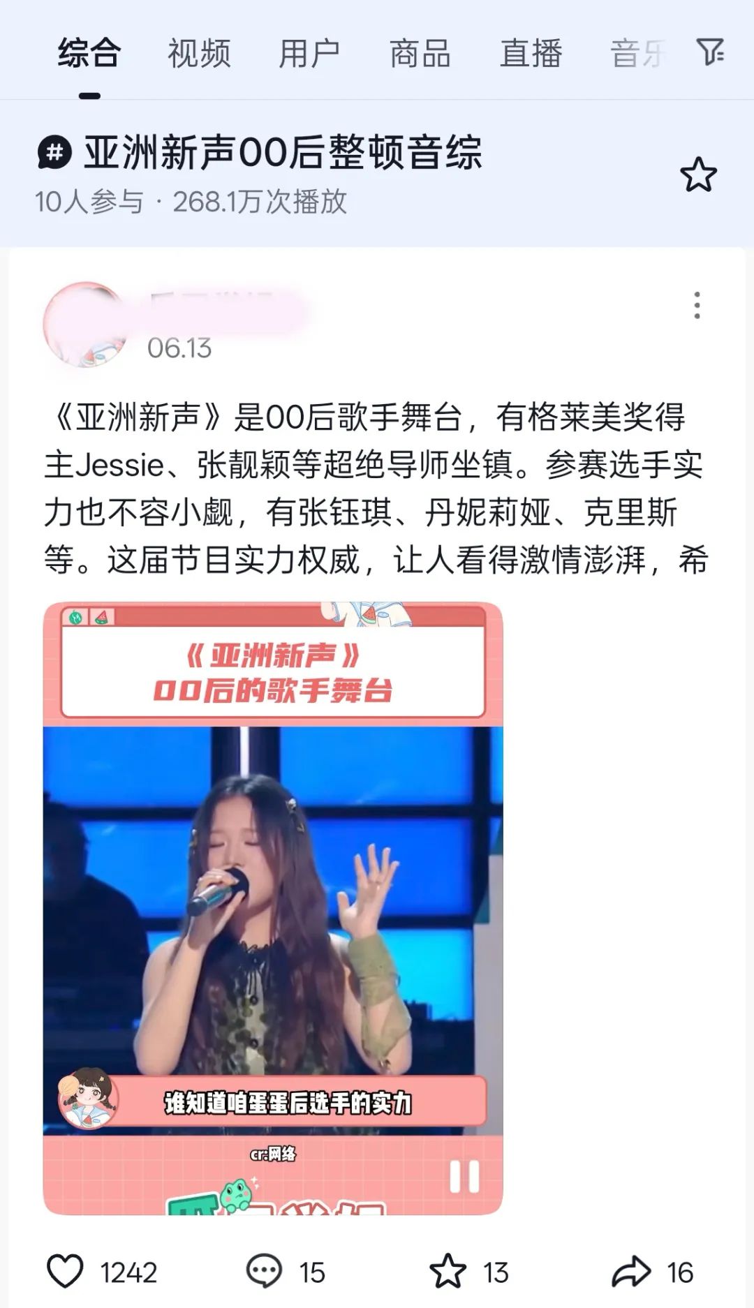 还有爱奇艺最近力推的全新音综《亚洲新声》,邀请了很多00后音乐人,首期代表中国出场的6位歌手年龄均在18-25岁之间。
