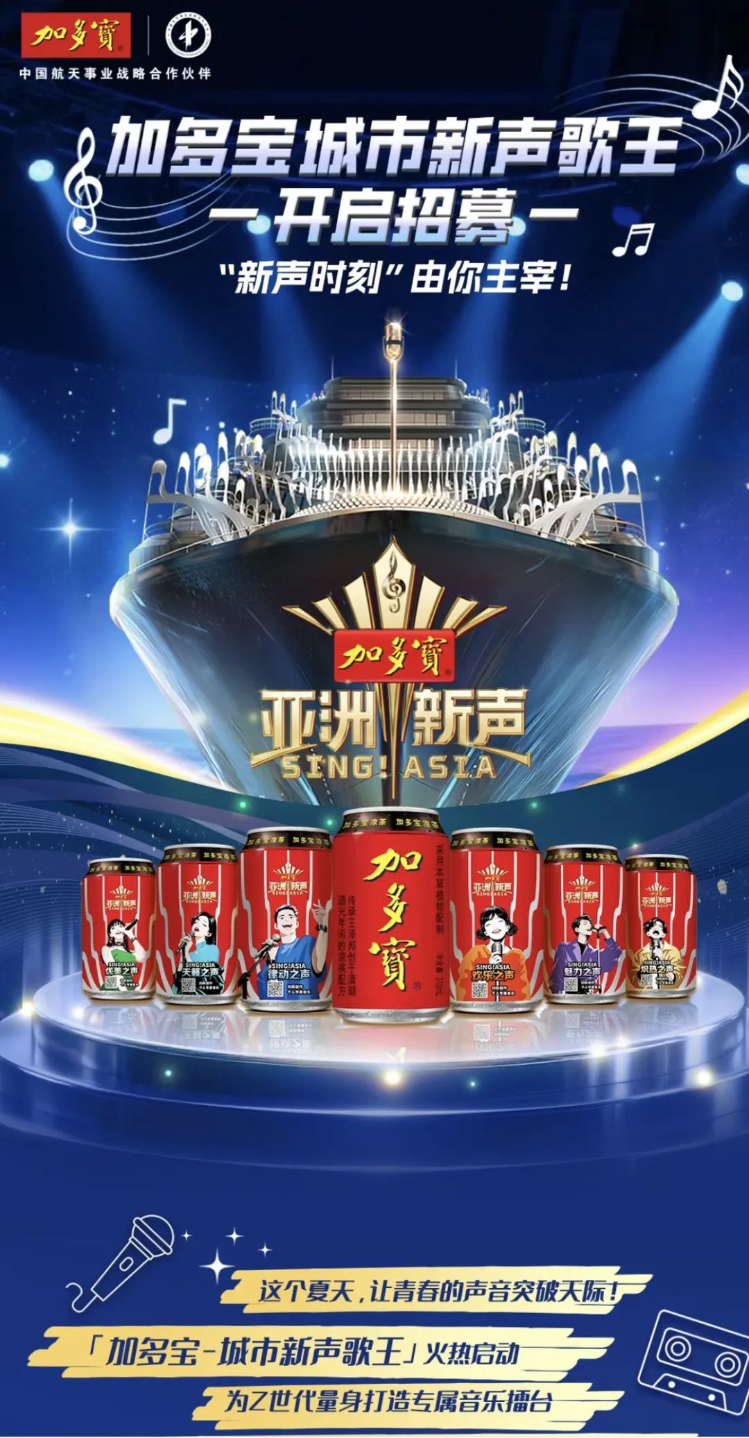 为了营造夏日有音乐、有美食的热辣氛围,加多宝不仅推出了联名产品“加多宝亚洲新声罐”,还开展了城市新声歌王活动,为Z世代量身打造专属音乐擂台。
