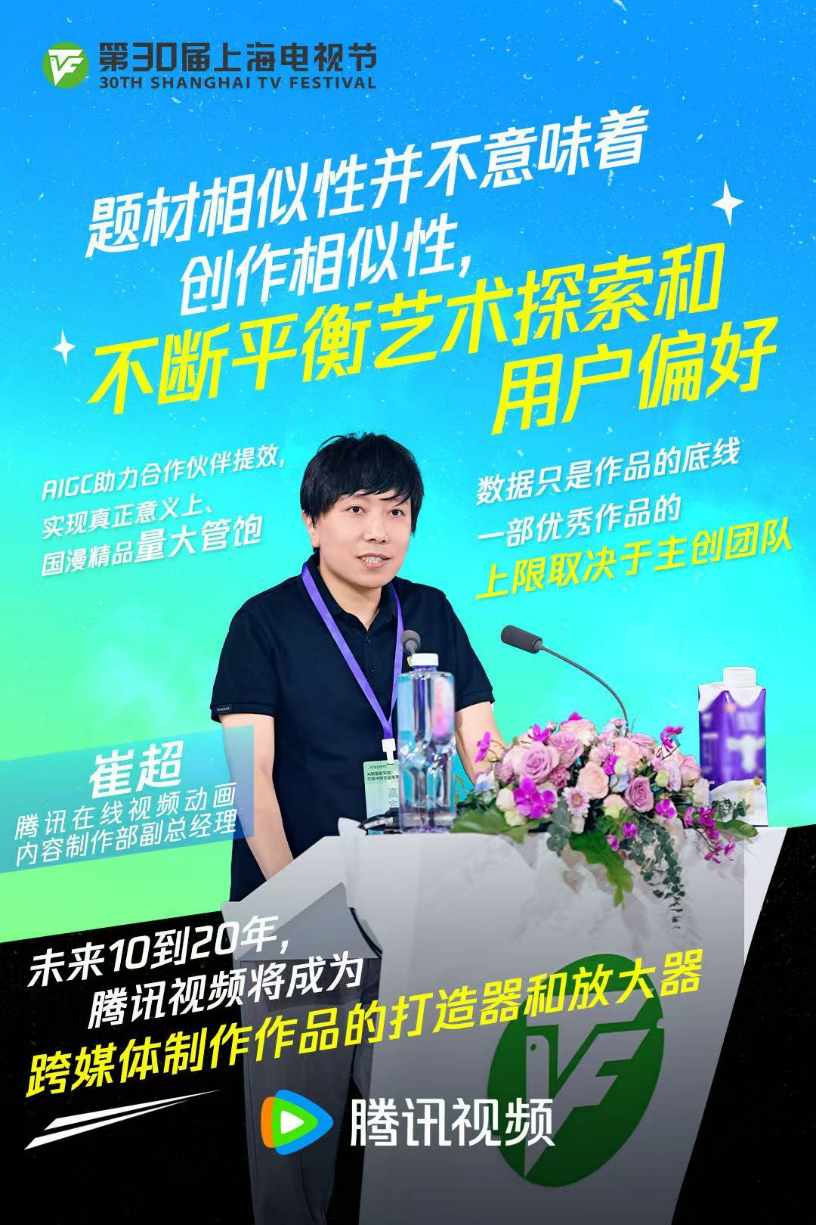 论坛上,腾讯在线视频动画内容制作部副总经理崔超分享了平台在内容布局、技术赋能与产业延展方面的思考与实践。他的发言,不仅回应了行业面临的现实变化与挑战,也勾勒出国产动画走向长期主义的新路径——一方面重构内容逻辑,另一方面升级产业方法。