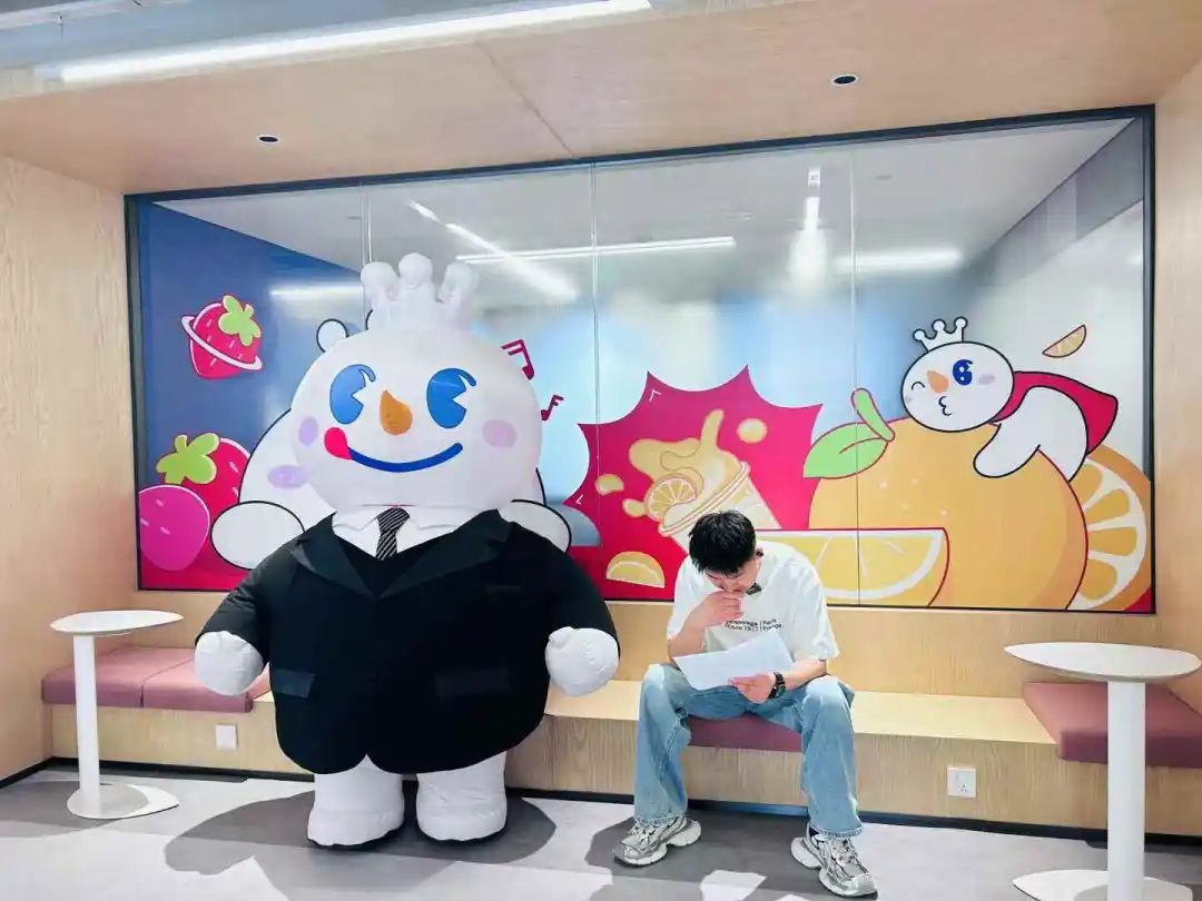 上市当天,雪王带着伙伴们登台敲钟,为品牌留下了一个轻松有趣的公开瞬间。而与此同时,蜜雪冰城公司内部依旧保持着一贯的风格,没有铺张的庆典,也没有过度渲染高光时刻,一切如常推进,更多精力仍专注于产品的研发、运营和门店支持。