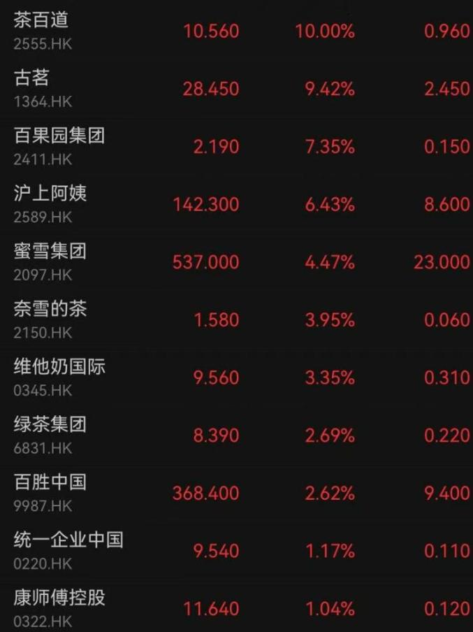 从结果上来看也确实如此,7月7日,茶饮股全线高开:茶百道一度大涨15%,截至发稿涨10%;奈雪的茶涨3.95%;古茗涨9.42%;沪上阿姨涨6.43%;蜜雪集团涨4.47%。同时,如果细数在7月5日补贴高峰中加班到深夜,甚至一天卖出4000杯饮料的门店,几乎都是诸如瑞幸、蜜雪冰城、茶百道和塔斯丁这类头部品牌。
