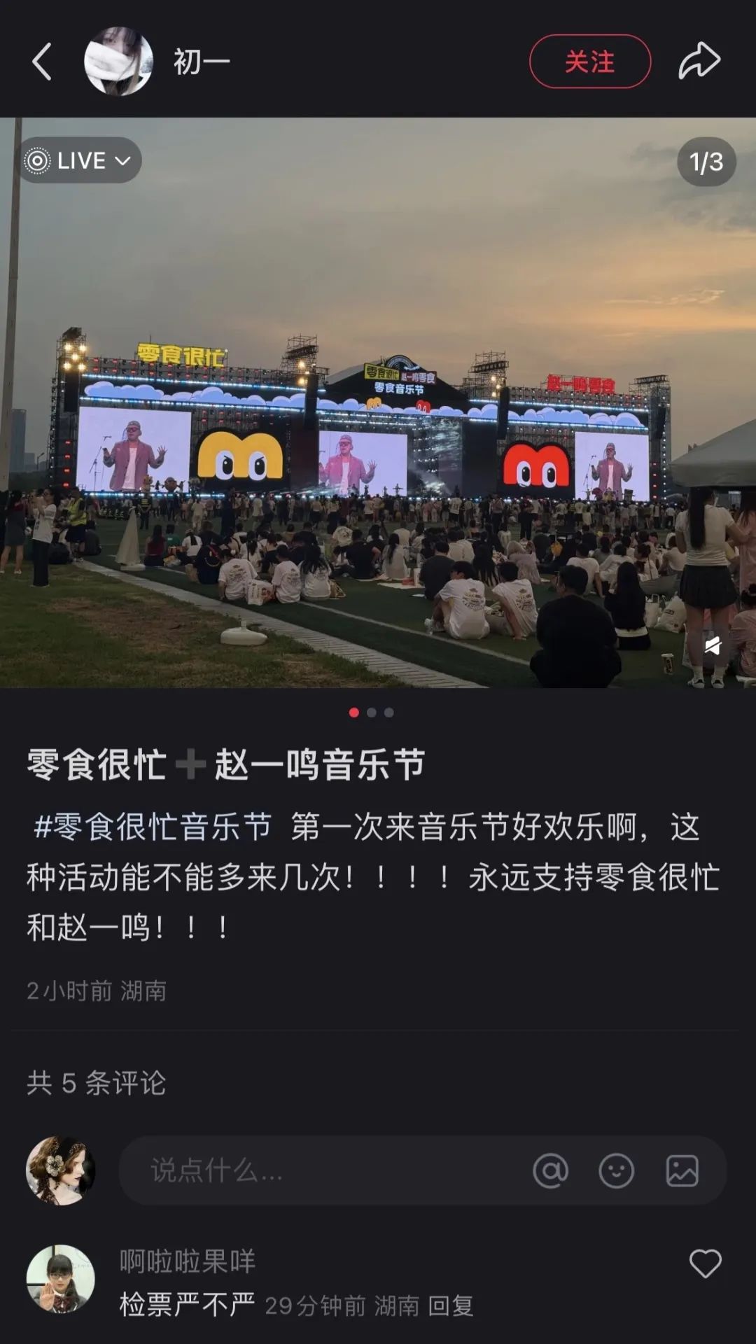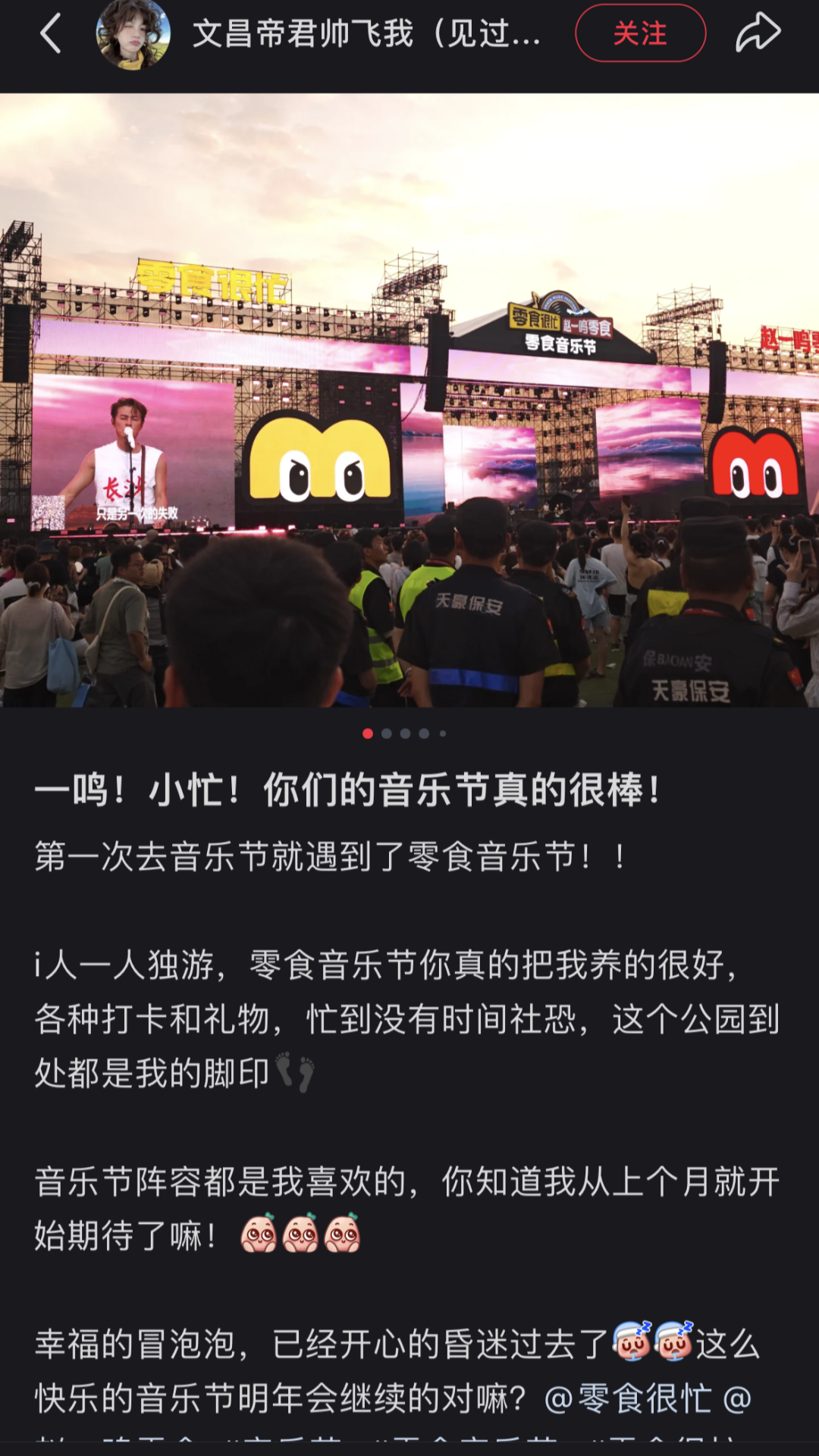 其实,猛得一看零食很忙和赵一鸣零食这俩牌子,这么搞音乐节,跨度挺大。但你细想就会发现,他们玩音乐节的套路,和卖零食的逻辑是一样的。