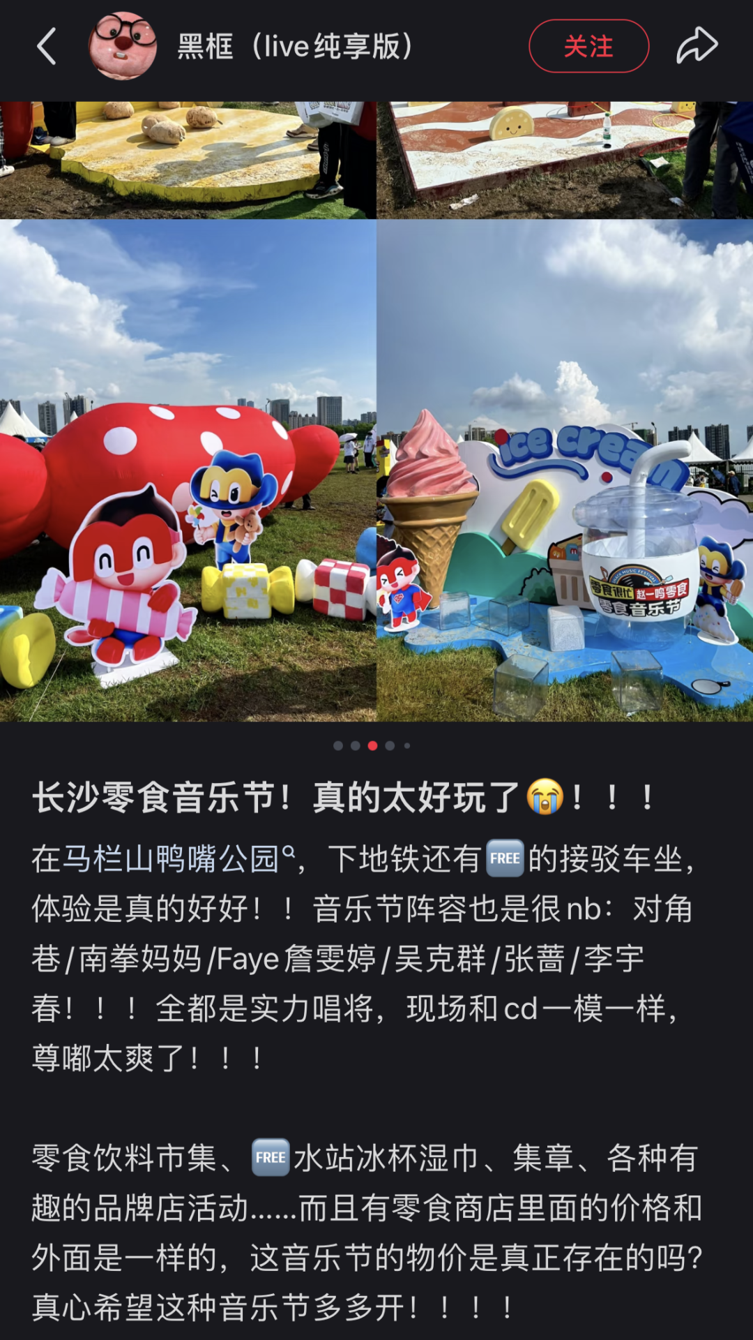 将音乐节与零食主题结合,打造沉浸式的零食乐园,让整个活动更具话题性和传播性,吸引不同圈层的消费者大量关注。