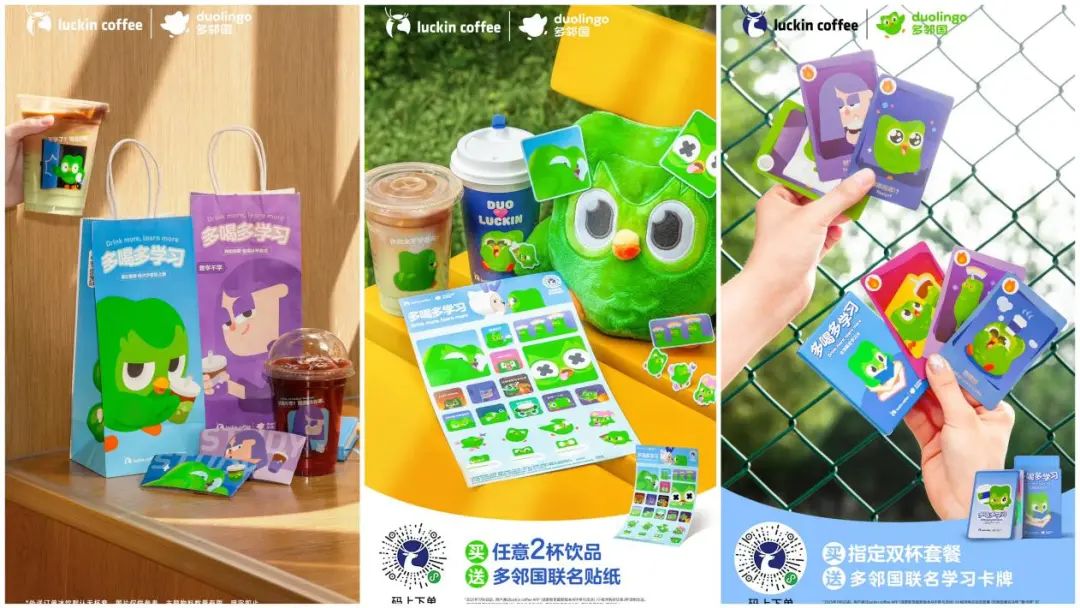 瑞幸和多邻国的 “联姻”,像夏天突然流行的 “西瓜拿铁”,离谱喝着却很搭。一个卖咖啡,一个教外语,本该八竿子打不着,却用 “结婚” 梗绑在了一起:绿沙沙拿铁对应多邻国的绿色猫头鹰,紫葡萄冰萃喊出 “Delicious”“おいしい” 等多国语言,连周边 “屁屁杯” 都印着 “学累了喝一杯”。这场跨界的聪明之处,在于找到了 “场景交集”:喝咖啡是为了提神,学语言需要专注,两者在 “高效学习” 的场景里自然咬合。品牌没做生硬的 logo 叠加,而是用 “婚礼短剧”“语言梗包装” 让跨界变成一场趣味派对 —— 就像给咖啡加了气泡水,熟悉的味道里多了层清爽的刺激。不过,过度依赖 “联姻” 的噱头,若用户对剧情、人设不感兴趣,可能忽略品牌 / 产品本身。