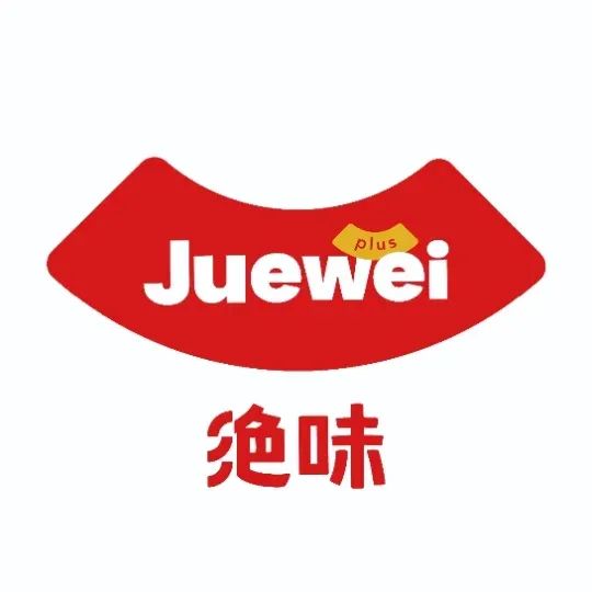 而绝味plus则是红色圆弧形的外框+「Juewei」字样的设计,LOGO里头还有一个黄色圆弧形设计+「plus」字样的小设计。