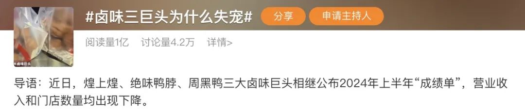 之前,#卤味三巨头为什么失宠#的热搜就曾引发讨论。