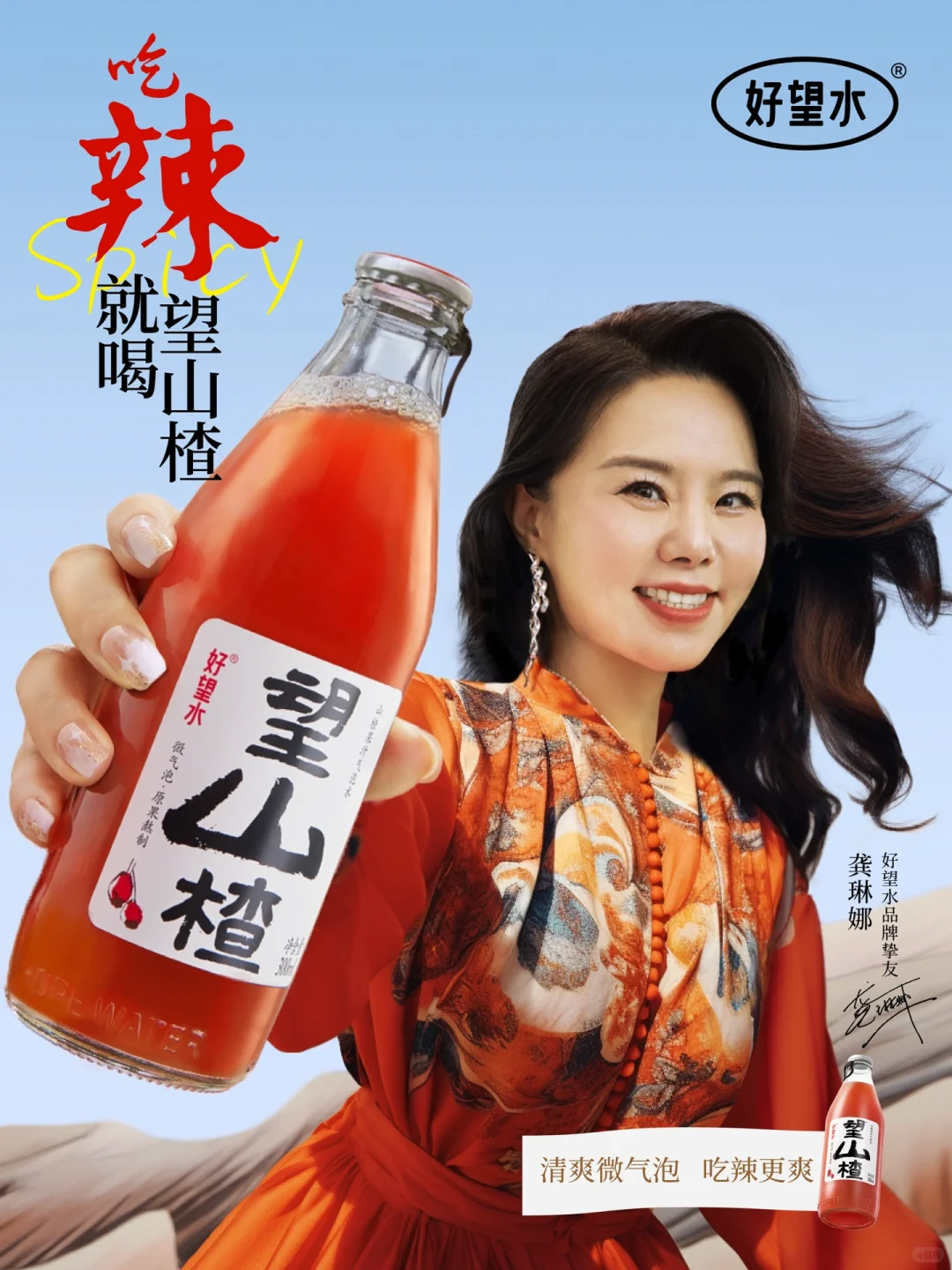 邀请龚琳娜老师演唱了一首神曲《龚琳辣》,由此也将其产品望山楂与“吃辣”场景绑定。