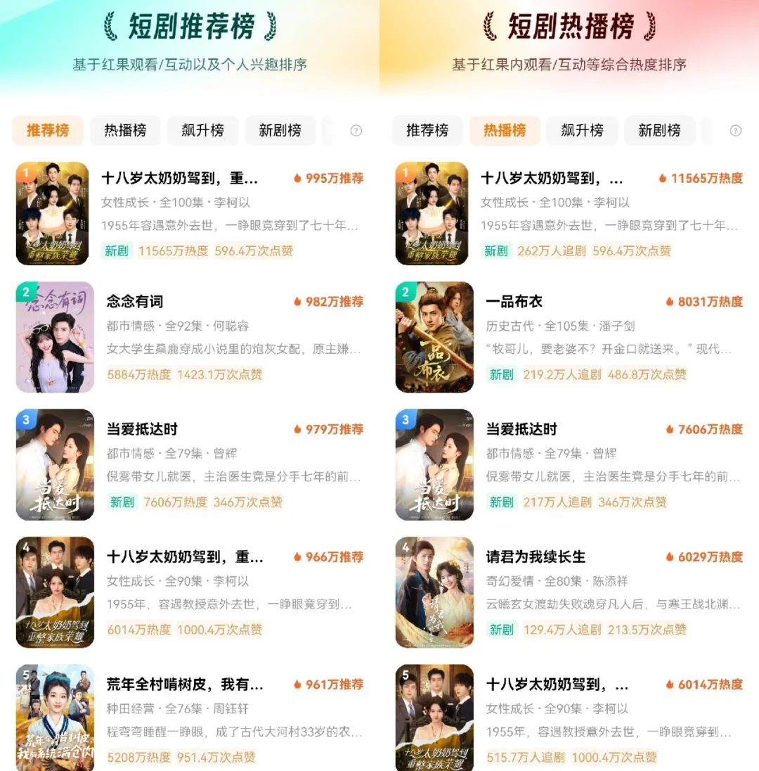 改版前,红果上单部短剧热热值4000以上即爆剧,无论剧的播放量等数据有多高,热度值都不会超过7000万,改版后最直接的表现就是许多短剧的热度值都出现了大幅提升,甚至出现“千剧涨停”的现象,使得原有的热度值参考意义下降。
