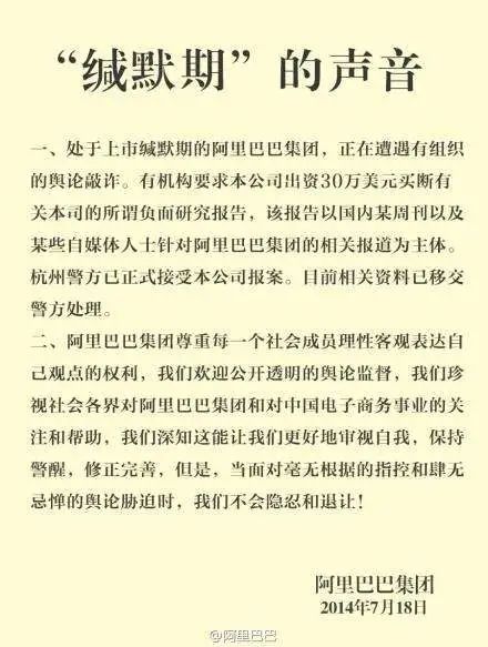 不管是在美股还是在中国股市,企业在递交了IPO申请之后,一直到上市后的***时间(根据不同市场的具体要求而定)之内,都不能主动对外发布与经营业绩相关的内容,尤其是不能给二级市场的投资者明确的盈利预期,也包括主动炒作概念(当然,已经上市的公司也不能这么做),被称作“缄默期”。