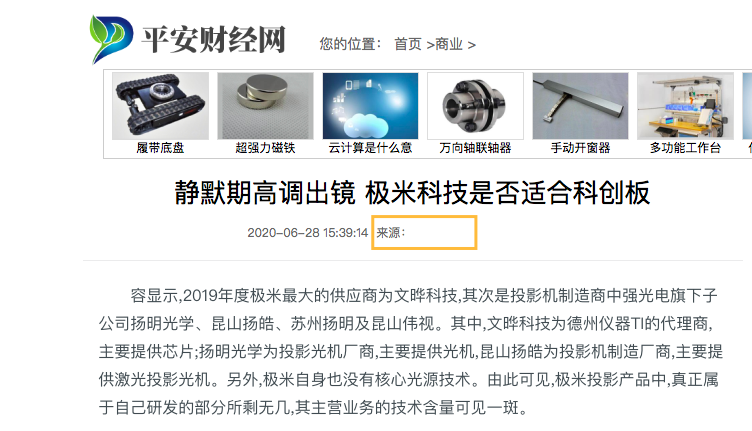 6月23日至今,有媒体以《静默期高调出镜 极米科技是否适合科创板》为题,质疑极米涉嫌违规。