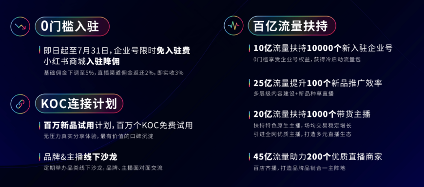 根据公开信息,此次小红书发布的品牌扶持计划主要分为三个部分,概括起来是降门槛、给流量、做连接。具体来看,包括: