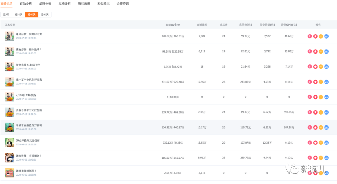 汪涵近60天直播带货一览。数据来自知瓜数据