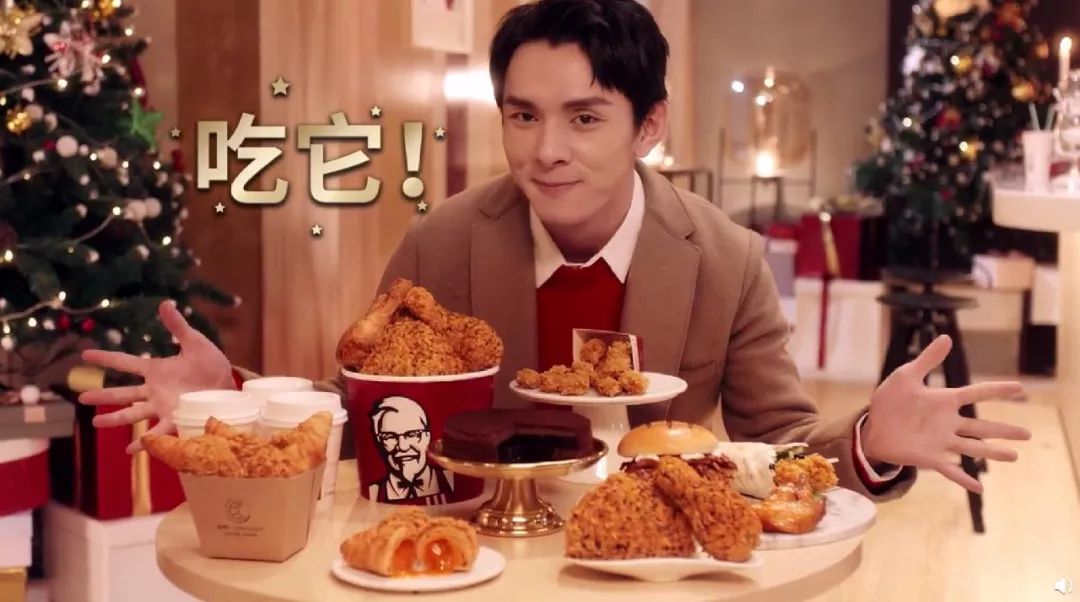 这两位可谓“ 当红炸子鸡 ”的流量大户,在圣诞节为 炸鸡店 站台,想想也是十分应景呢~