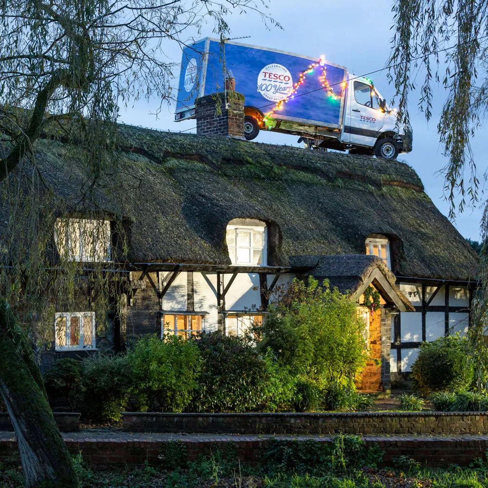 Tesco(乐购)是英国最大的连锁超市,品牌创立至今已经经历了200年的历史。 而他们今年的圣诞广告,是为了 纪念他们推出超市外送服务100周年 。