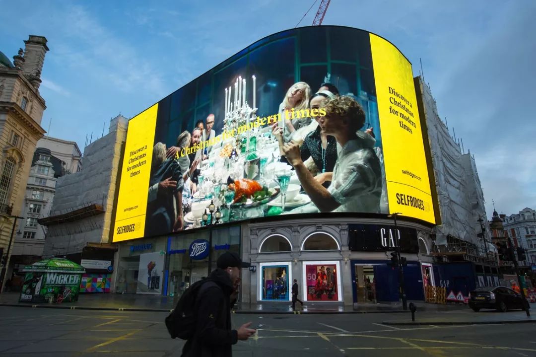 他们甚至还斥巨资将这个圣诞广告挂到了伦敦人流密集的皮卡迪利广场(Picadilly Circus)进行展示: