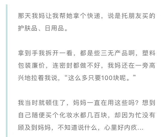不知道你注意到没有,这样一个小小的情感设计,不仅是在替用户关怀妈妈,还同时照顾到了用户的感情需求。一篇内容,提供双重情感满足,给用户带去的就是加倍的情感体验。怎能不感动,不下单。