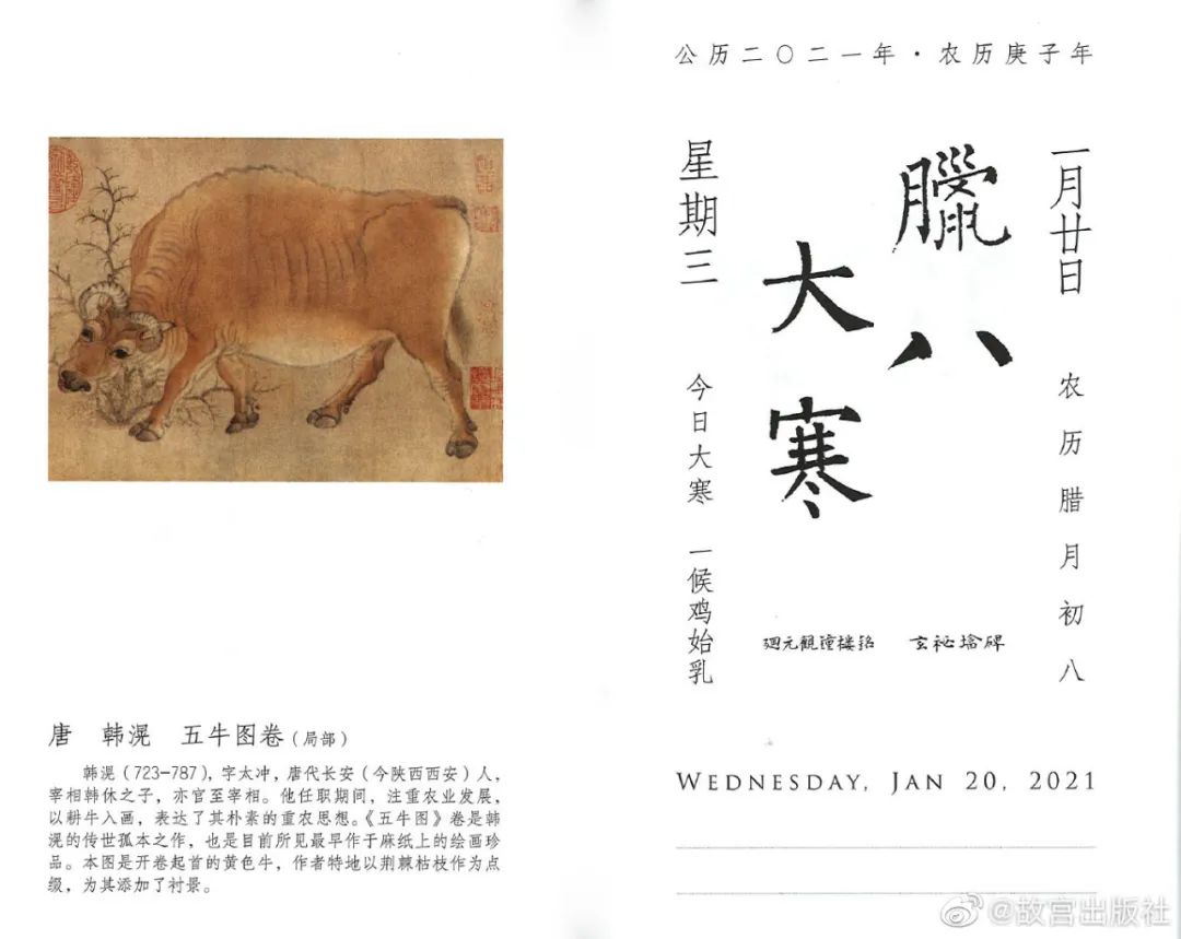 日历配图选取与福牛与农耕相关的文物,呈现“福牛贺新岁,丰年禾黍香”的祥瑞图景。