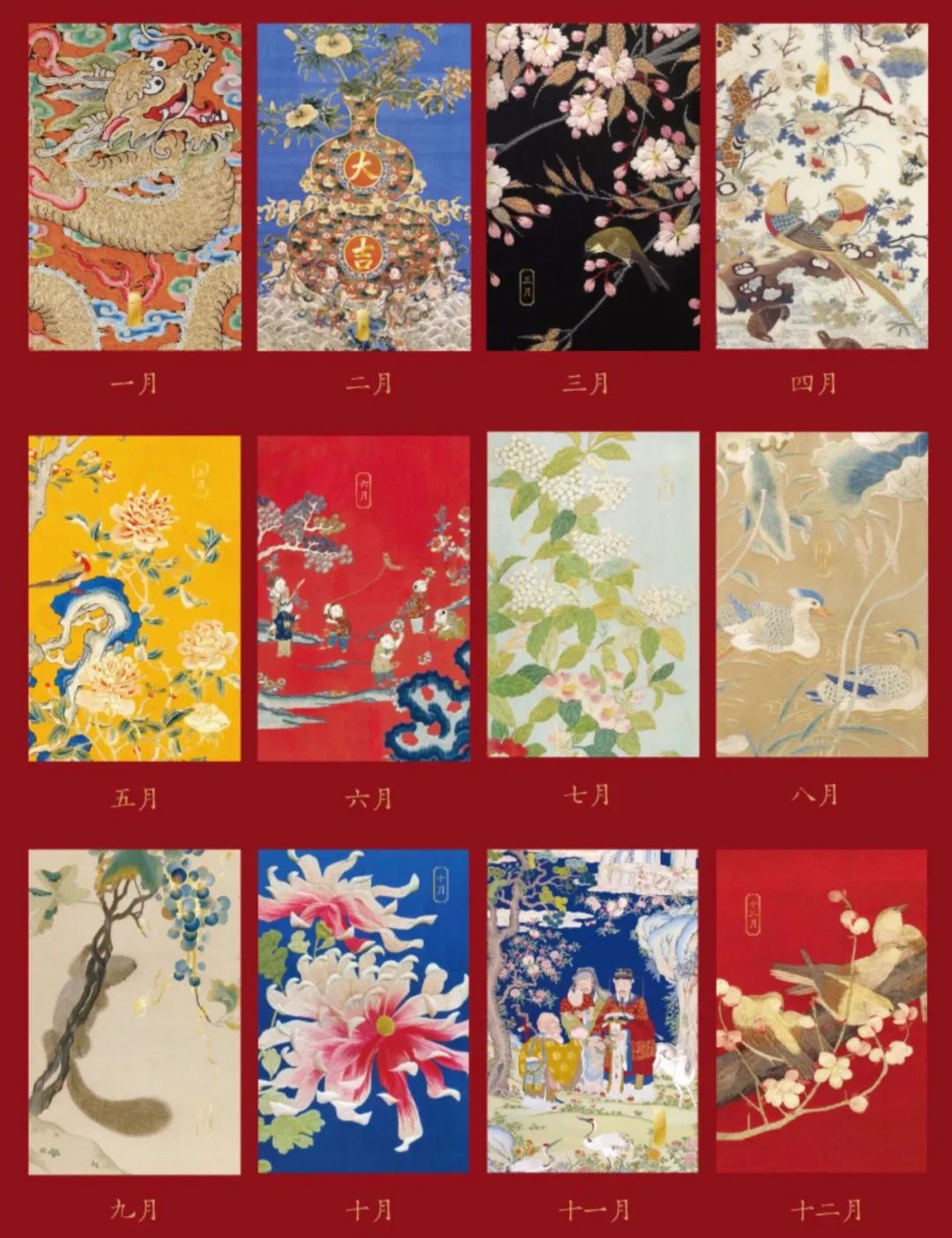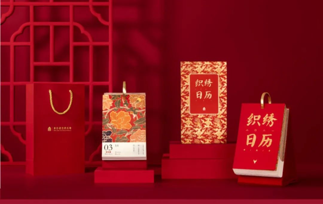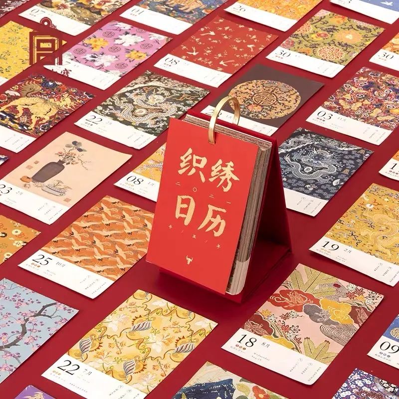 织绣是我国古代传统手工绣中的一种精湛绣法,这款日历的创意就来源于故宫博物院收藏的织绣文物。