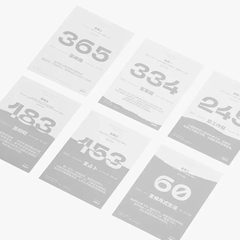 通本白色,清冷简洁,在正序的日期下,以数字形式呈现2021年剩下的时间,以另一个角度审视时间。
