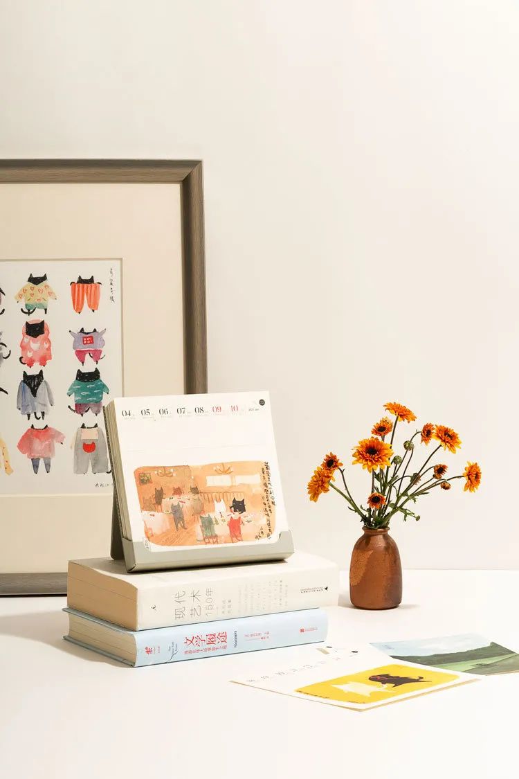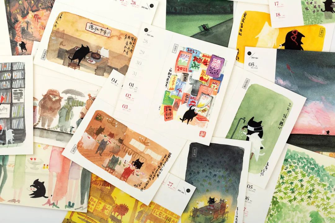 巧妙的是,猫咪插画可以撕下,一张日历变成了书签,一张插画变成了明信片。