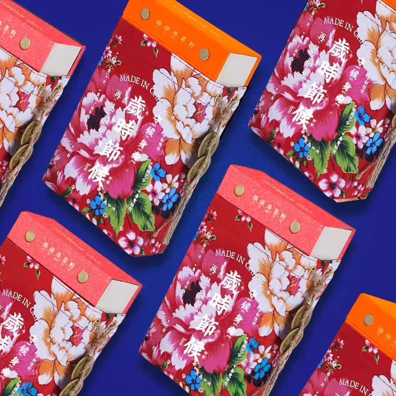包装以民间大花布为灵感,加上铜钱元素,充满复古设计感!