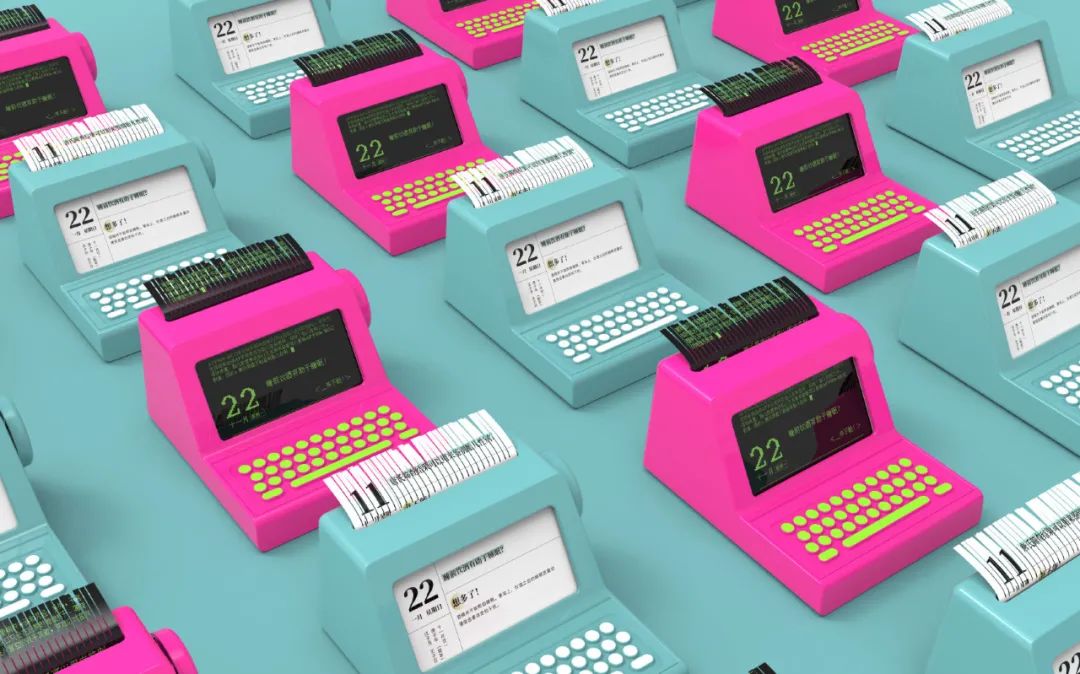 日历以复古打字机为蓝本进行设计,颜色采用有1980年代的Disco风荧光粉、1970年代的Legend复古蓝,格调超有趣。